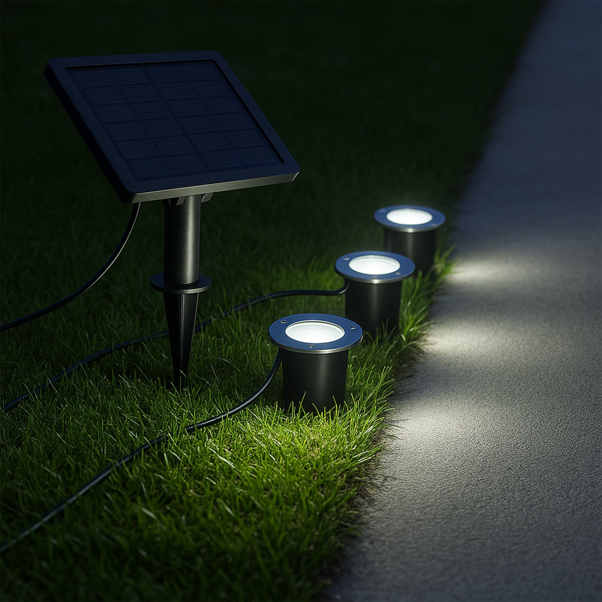 Le kit de 3 spots solaires Solpool constitue une solution d'éclairage extérieur blanc chaud (3000K) idéale pour le bord d'une piscine. Chaque spot délivre une intensité de 100 lumens pour créer une ambiance accueillante. Le système dispose d'un panneau solaire déporté avec capteur crépusculaire pour une autonomie optimale sans consommation électrique sur secteur. Le panneau peut se fixer au sol ou au mur grâce au kit fourni. Chaque luminaire est équipé d'un câble de 2, 7 mètrès relié au point de connexion central, permettant de positionner précisément vos points lumineux pour valoriser vos bordures. Fabriqués en ABS avec un revêtement inox, ils sont certifiés IP44 pour résister aux intempéries et aux rayons UV saison après saison. Pour un effet encore plus chaleureux, combinez-la avec d'autres sources de lumière et variez les hauteurs d'installation.