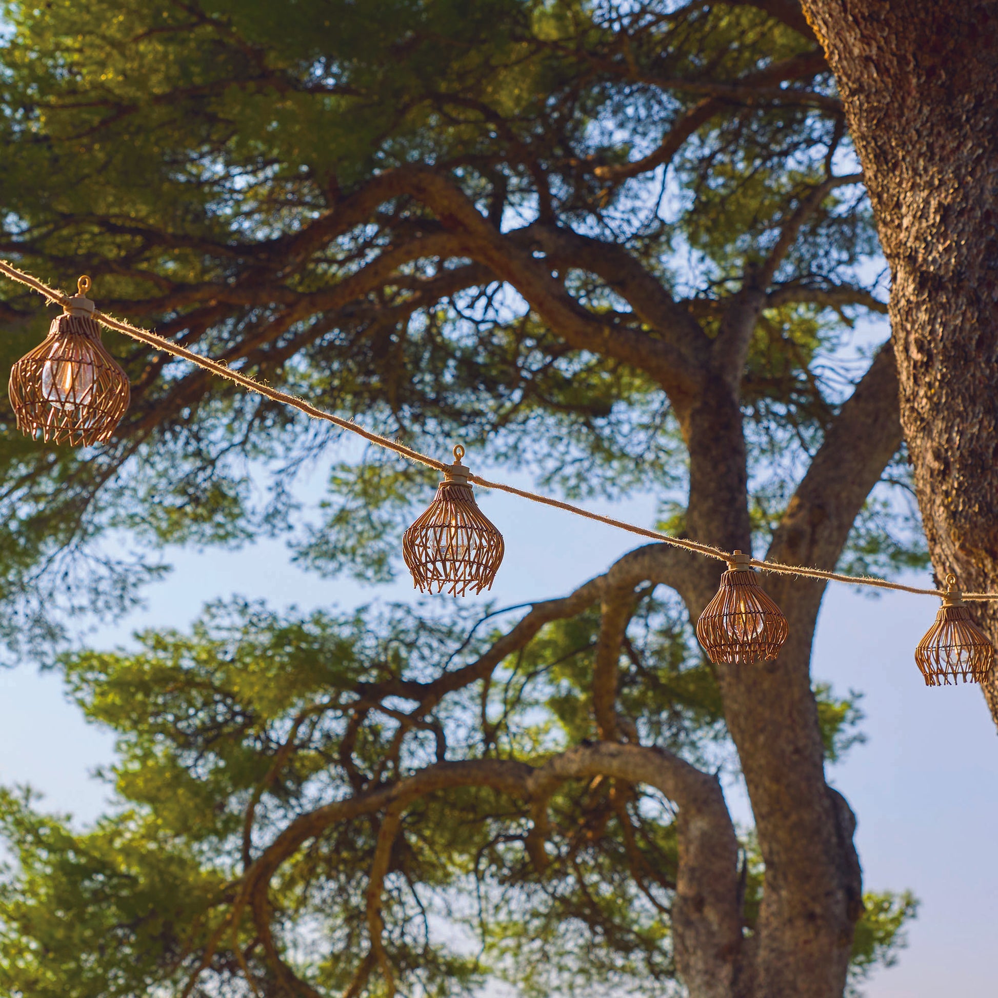 - Hybrid LED String Lights : The ROTILIA LIGHT HYBRID string lights create a charming, natural ambiance to enhance your garden. With their 10 beige rattan shades, they will transport you for an evening. Their warm white lighting and natural design help create a peaceful, calm atmosphere. They're the perfect accessory for a relaxing evening on the patio.