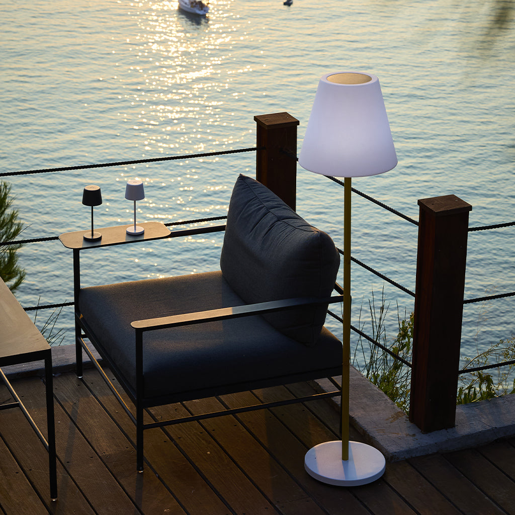 OUTDOOR / INDOOR USE: after a quick charge of your Standy Wood Solar lamp by solar panel or USB cable, you can use this designer lamp anywhere, outside as well as in the house. Whether as an outdoor lamp for the terrace, as a lamp for the living room or as a decorative lamp, the Standy Wood Solar floor lamp adapts to all situations.