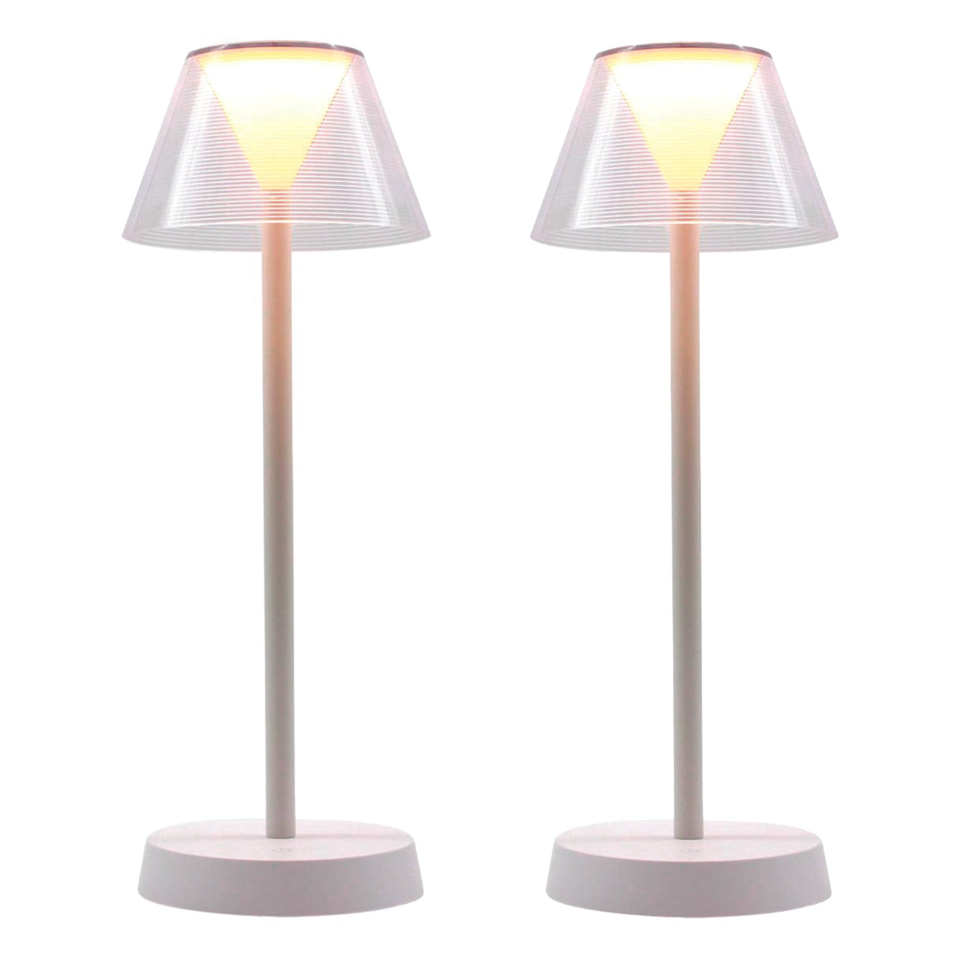 Le Lot de 2 Lampes de Table LED Sans Fil Beverly White est la solution d'éclairage design et nomade idéale pour l'intérieur comme l'extérieur. Caractérisée par un deisgn en aluminium et plastique blanc et un style fin et moderne, cette lampe à poser autonome offre jusqu'à 5 heures d'autonomie après une charge rapide (4h via USB) et dispose d'une base LED blanc chaud puissante (+100 Lumens) et dimmable sur 4 positions, vous permettant de moduler l'ambiance lumineuse avec précision. Extrêmement polyvalente, la Beverly White (H. 34cm) est parfaite comme lampe de chevet design, lampe de salon, ou lampe d'extérieur pour la terrasse grâce à sa protection IP44 contre les éclaboussures et sa résistance aux UV, apportant une touche chic et tendance à toutes vos décorations.