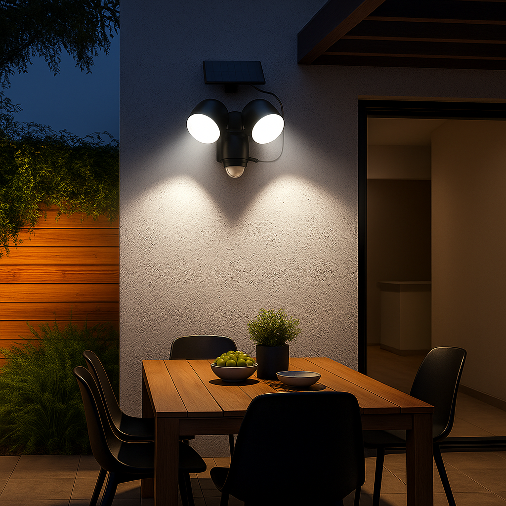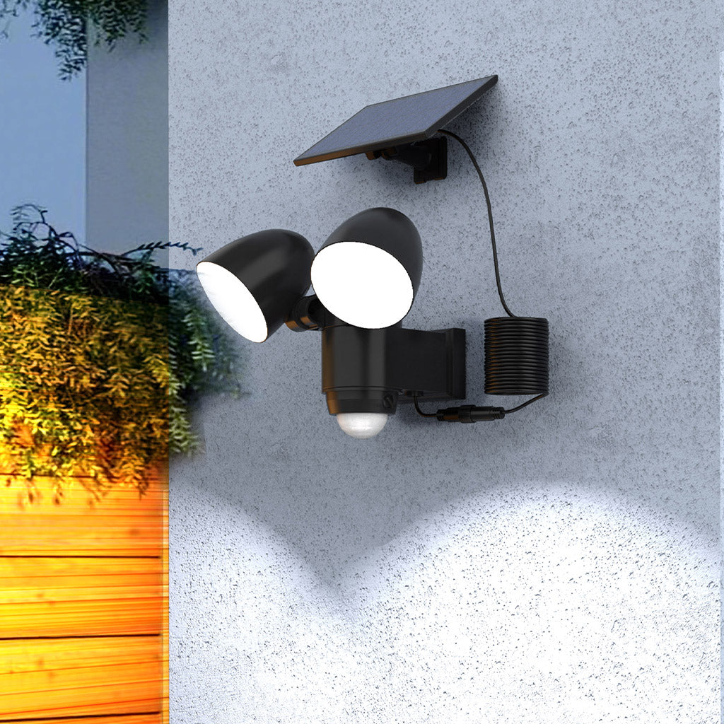 Le projecteur solaire Walee Black est un luminaire extérieur haute performance doté de 2 têtes orientables à 180 degrés. Il délivre un flux lumineux puissant de 1000 lumens, idéal pour sécuriser une entrée de garage ou baliser une allée. Équipé d'un détecteur de mouvement d'une portée de 6 à 8 mètrès et d'un capteur crépusculaire, il s'allume automatiquement dès la nuit tombée en cas de présence. Sa batterie lithium de 1200 mAh offre une autonomie technique de 10 heures après une charge solaire de 8 heures. Certifié IP44, il résiste aux intempéries saisonnières. Ses LEDs basse consommation assurent une durée de vie technique allant jusqu'à 50 000 heures. D'une dimension de 13, 9x14, 5x15, 4 cm, il se fixe facilement sur tout support mural avec les vis incluses. Que ce soit pour une occasion spéciale ou pour un usage régulier, elle valorise instantanément votre extérieur comme votre intérieur.