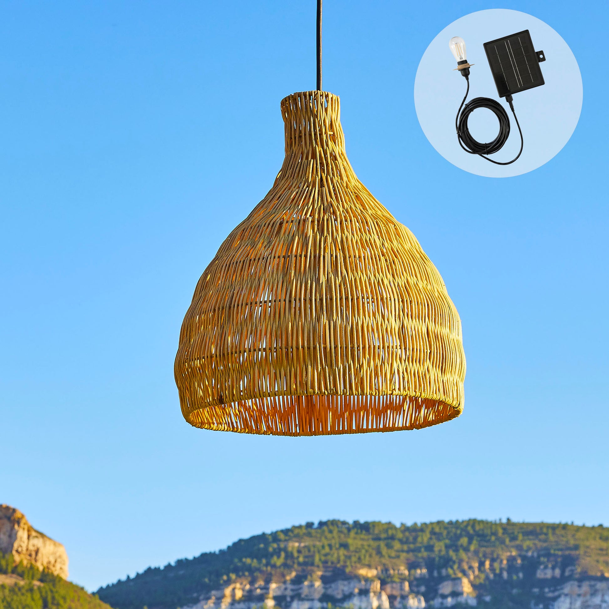 - HANDCRAFTED : The BELLA SOLAR solar pendant light, crafted in Vietnam, is made of natural rattan. Rattan is a strong and durable material; it is both flexible and rigid, allowing for a multitude of shapes. To keep the lampshade in good condition, it is recommended to hang it in a dry place, away from humidity and rain.