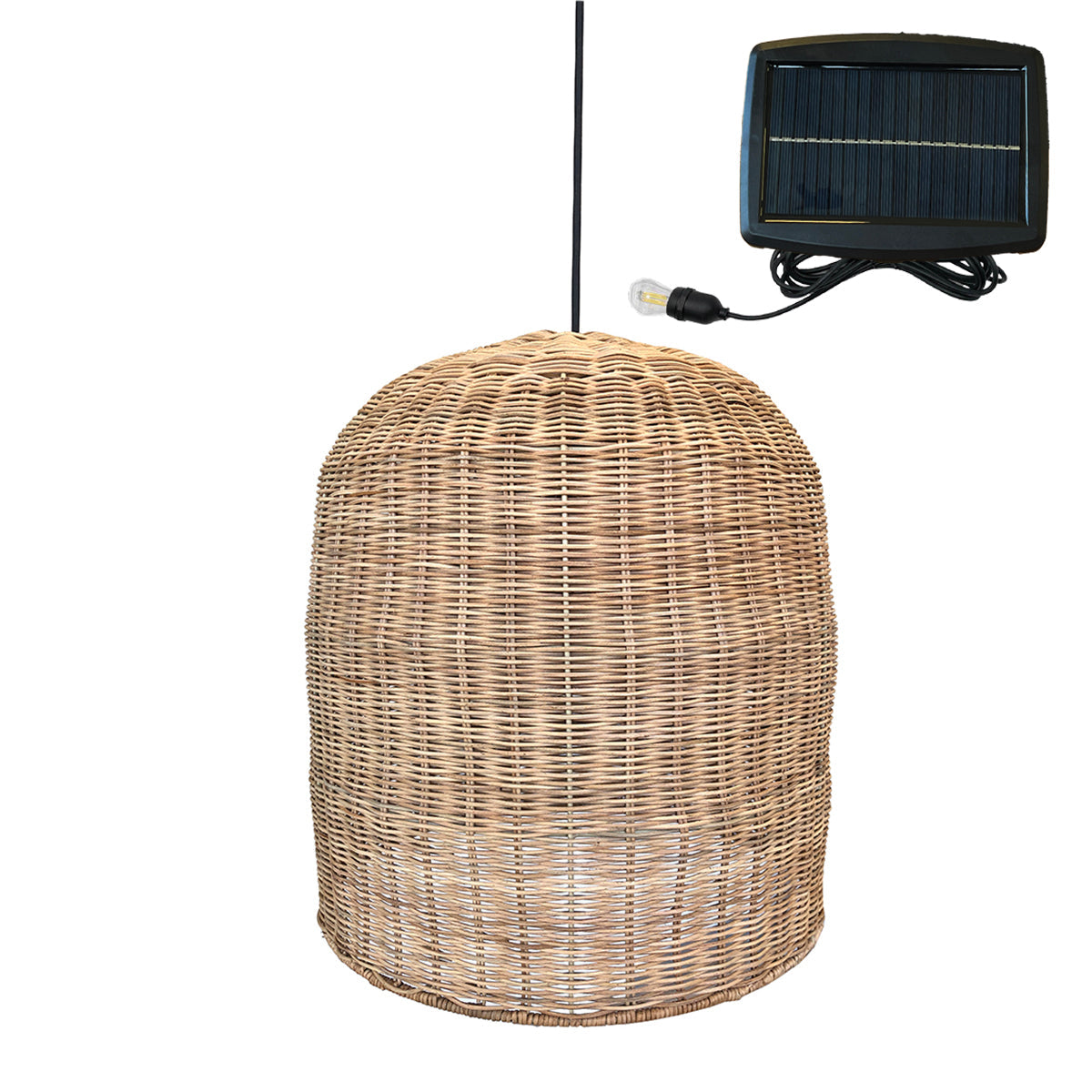 - LED SOLAR PENDANT LIGHT : GIACOMO SOLAR is a warm white LED solar pendant light. It will bring a natural touch to your decor. Exotic and warm, it will highlight a modern interior and will adapt perfectly to a more bohemian or vintage style thanks to its ethnic chic look. Its unique braiding will enhance your living space. Dimensions: 40 x 40 x 45 cm