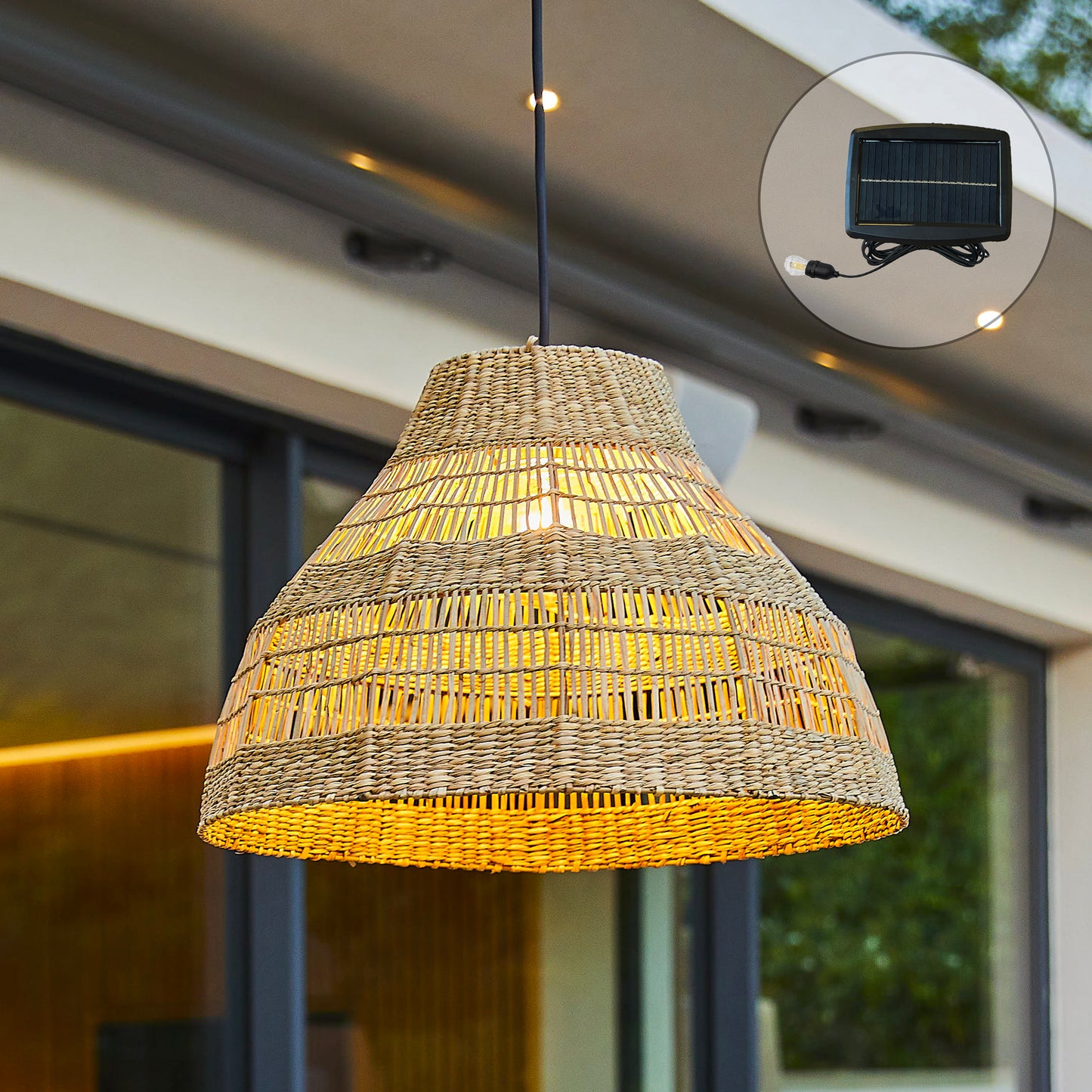 - HANDCRAFTED : The MERIDA SOLAR solar pendant light, crafted in Vietnam, is made of seagrass. Seagrass is a strong and durable material; it is both flexible and rigid, allowing for a multitude of shapes. To keep the lampshade in good condition, it is recommended to hang it in a dry place, away from humidity and rain.