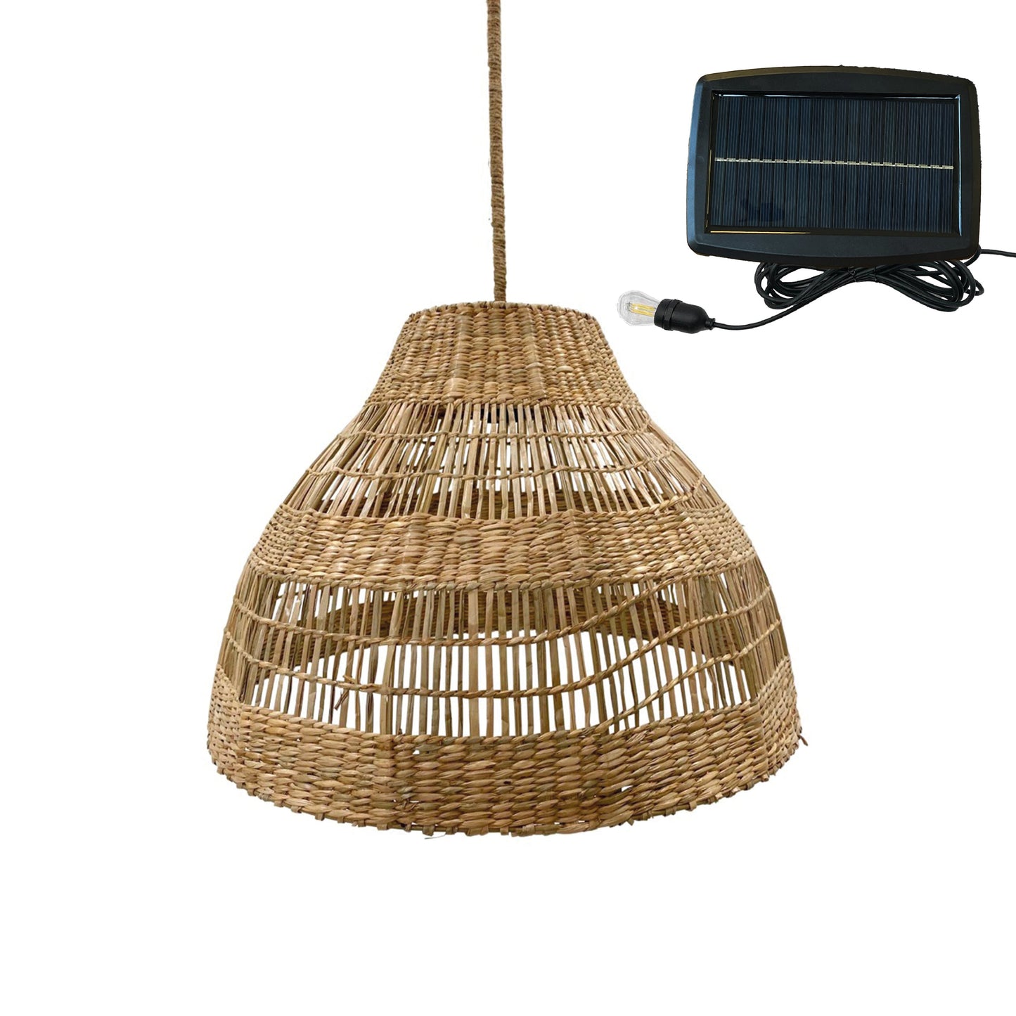 - LED SOLAR PENDANT LIGHT : MERIDA SOLAR is a warm white LED solar pendant light. It will bring a natural touch to your decor. Exotic and warm, it will highlight a modern interior and will adapt perfectly to a more bohemian or vintage style thanks to its ethnic chic look. Its unique braiding will enhance your living space. Dimensions: 48 x 48 x H34 cm