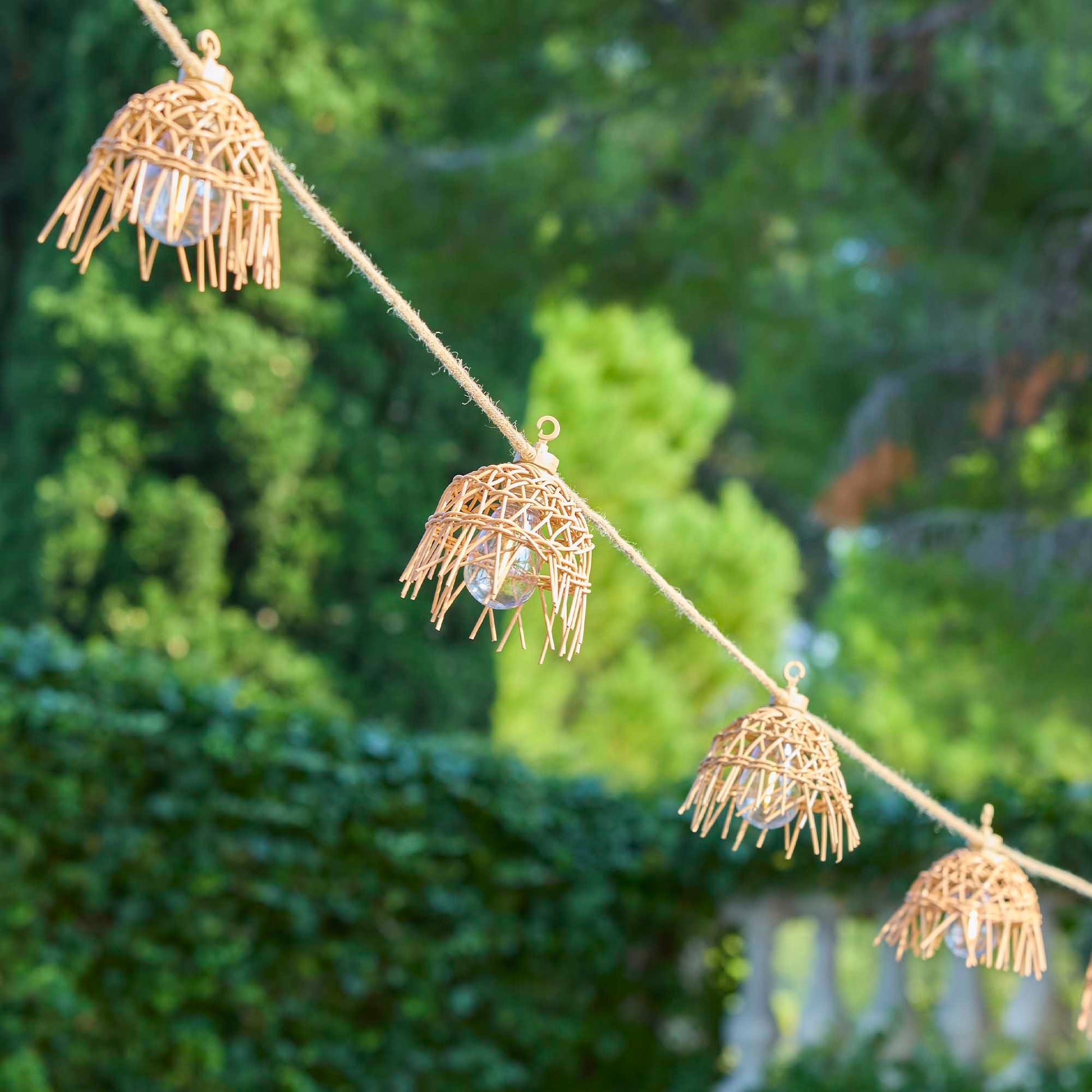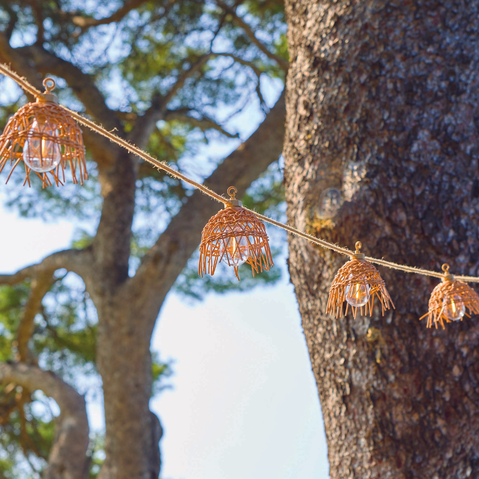 La guirlande hybride Mini Hawai Light Hybrid apporte une touche exotique immédiate grâce à ses 10 abat-jours en polyrotin à l'effet paille naturelle. Ce modèle de 8 mètrès innove par sa double alimentation : il se recharge via un panneau solaire pour un usage durable ou se branche sur secteur pour un éclairage constant. Ses ampoules LED diffusent une lumière blanc chaud de 480 lumens, créant une ambiance tropicale et conviviale. Certifiée IP44 et traitée contre les UV, elle est conçue pour résister durablement aux conditions extérieures. Avec 3 mètrès de câble avant la première ampoule, elle offre une grande liberté d'installation sur vos terrasses, jardins ou salons. Cette version compacte est la solution parfaite pour une décoration authentique, polyvalente et facile à installer en toute circonstance.