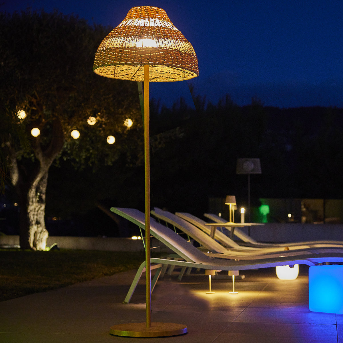 - LAMPADAIRE SANS FIL : ELION est un lampadaire sans fil au design effet naturel, offrant une atmosphère naturelle d'une élégance exceptionnelle. Il est accompagné de sa lampe nomade rechargeable LYS aimantée, qui se fixe facilement à la surface métallique de l'abat-jour. Cette lampe propose une luminosité réglable, passant du blanc chaud à des nuances multicolores, vous permettant de personnaliser votre éclairage à tout moment. L'abat-jour en acier fini bois et le pied en métal assurent une qualité optimale et une longévité remarquable. Le pied en acier avec une finition bois garantit une stabilité optimale, le rendant résistant aux intempéries.